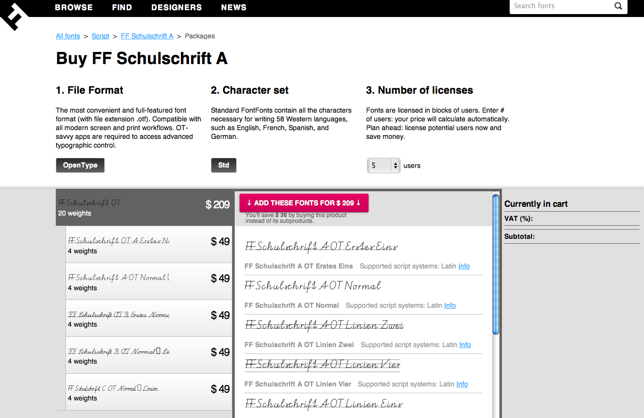 Once you have decided how many licenses you need, you can buy your font, agree to the EULA and proceed to download the fonts immediately once payment has cleared.